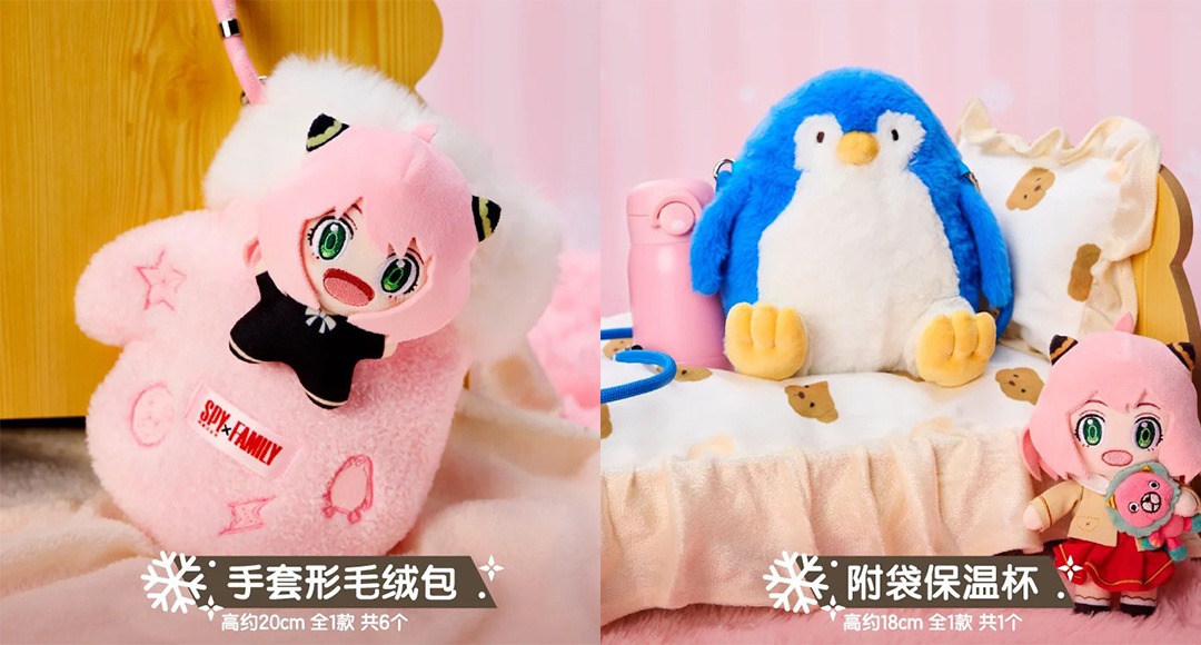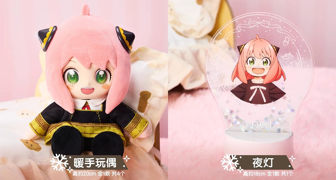 人氣動畫《SPY×FAMILY 間諜家家酒》帶著滿滿暖意登場!這次福賞推出全新「冬日計劃」系列,以療癒溫馨為主題,陪伴粉絲度過寒冷季節。主角安妮亞化身多款可愛周邊,包括超軟萌「暖手玩偶」、Q彈「手套形毛絨包」與「毛絨帽子」,無論是居家還是外出都能感受到溫暖滿滿。另有「附袋保溫杯」與「夜燈」設計,實用又具收藏價值。牆上掛畫、角色徽章、合影掛件等細節小物,也完美重現《SPY×FAMILY》的家庭魅力。最吸睛的「搖搖大立牌」更以安妮亞的標誌性表情為主題,趣味滿點。整體以粉色與暖冬元素包裝,讓人一眼就被療癒氛圍包圍。無論是粉絲收藏或作為冬季禮物,都是不可錯過的心動之選!