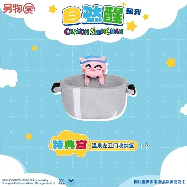 A賞 溫泉小新毛絨收納籃,看,小新瞇著眼舒舒服服地泡在溫泉裡啦~每次收納物品都彷彿能聽到他滿足的嘆息