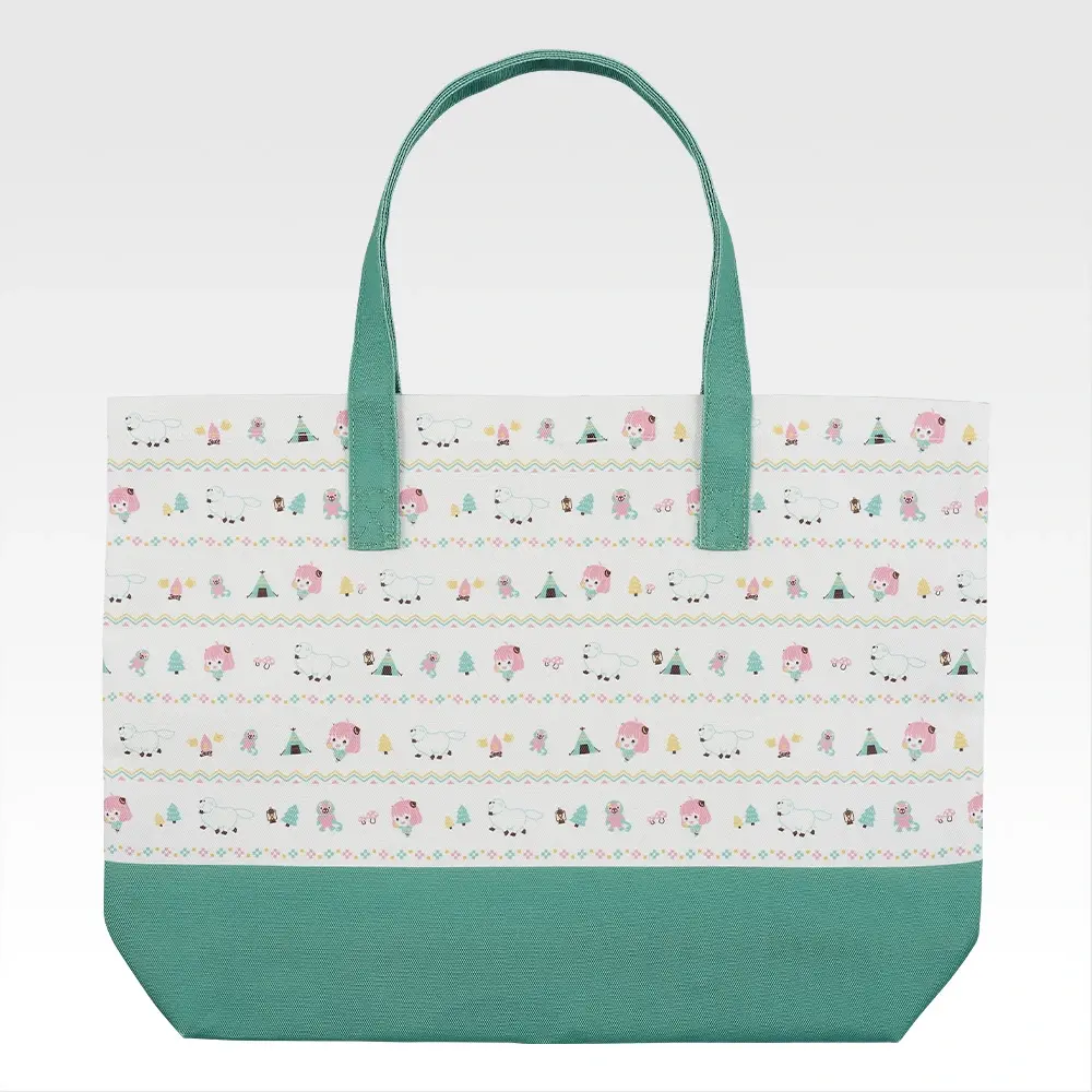 薄荷綠與白色的清新拼接,非常適配歡樂的出遊氛圍,上面印有安妮亞等可愛元素,35cm大尺寸,適合出遊裝下各種零食飲料~